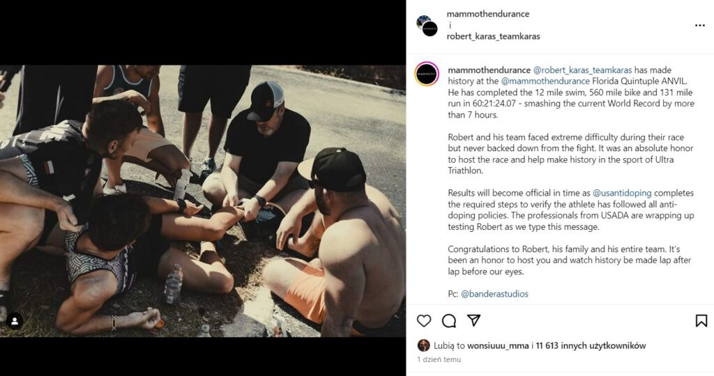 Po dwuletniej przerwie spowodowanej dyskwalifikacją za stosowanie dopingu, Robert Karaś powrócił na arenę zawodów z jeszcze większą determinacją. Tym razem udowodnił swoją wyjątkową siłę i wytrzymałość, zdobywając rekord świata podczas zawodów Florida ANVIL Ultra Triathlon. Florida ANVIL Ultra Triathlon to wyjątkowe wydarzenie, w którym uczestnicy muszą pokonać trasę pięciokrotnego Ironmana, łącznie przemierzając 1130 km. Karaś stanął na starcie gotowy do wyzwania, a jego determinacja i zaangażowanie przyniosły mu zwycięstwo oraz rekord świata.